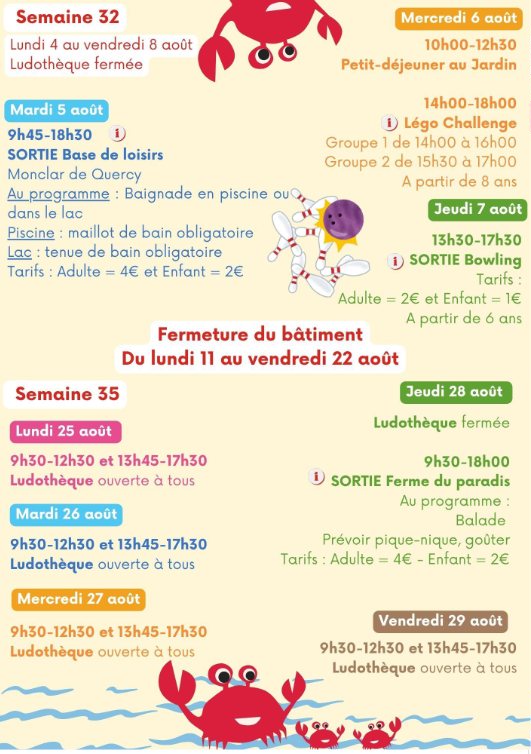 SORTIES : Pré-inscription obligatoire UNIQUEMENT PAR TÉLÉPHONE à partir du LUNDI 23 JUIN à