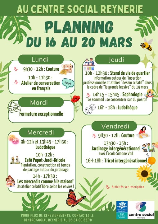 Une nouvelle semaine débute au centre social Reynerie ! On vous attend nombreux