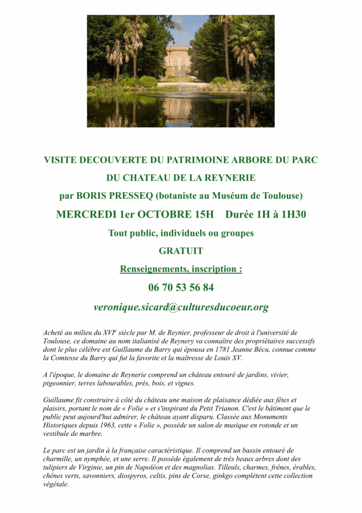 « Tous les Évènements Cet évènement est passé. Visite découverte du patrimoine arboré du château de la Reynerie 1 octobre – 15h00 – 16h30 Parc du château de Reynerie Toulouse, 31100 France + Google Map Ajouter au calendrier Google Agenda iCalendar Outlook 365 Outlook Live 2025-09-28