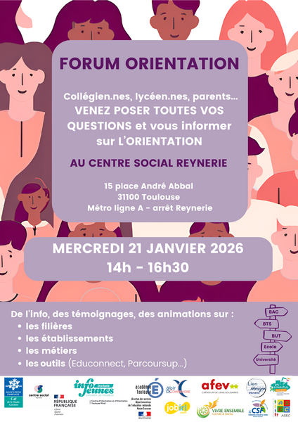 - au Centre social de La Reynerie, 15 place André Abbal 31100 Toulouse – Métro ligne A – station Reynerie.