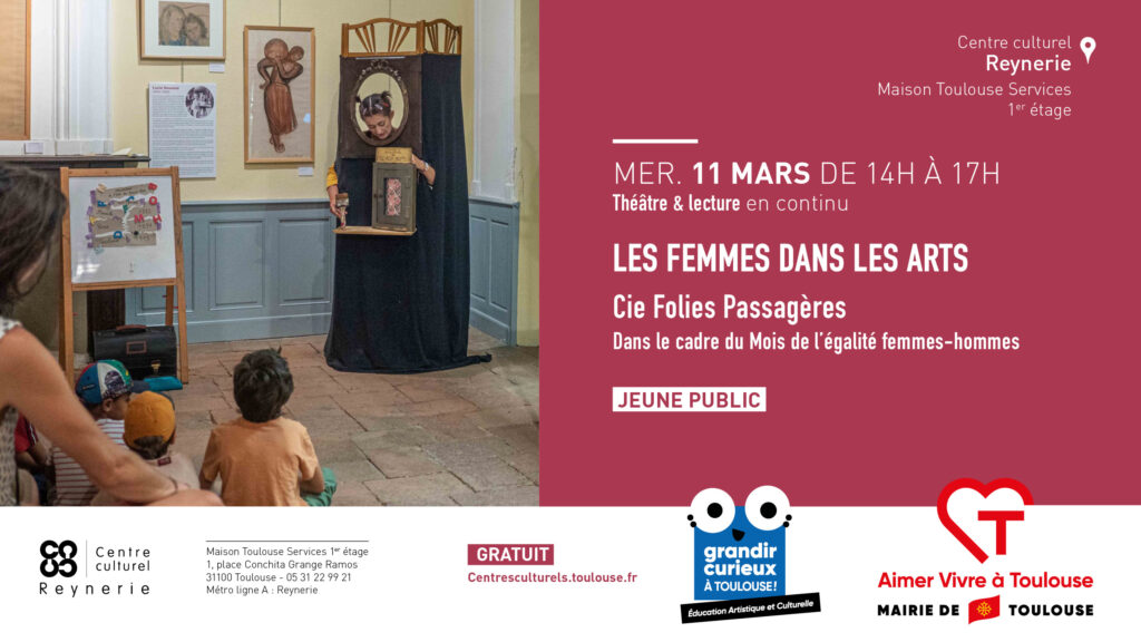 Les femmes ont été les oubliées de l’histoire, les arts n’y font pas exception. Cette médiation se propose de découvrir ces artistes historiques ou contemporaines de manière ludique à travers une proposition pluridisciplinaire mêlant arts plastiques, théâtre, jeux, lecture d’albums jeunesses et quelques surprises !