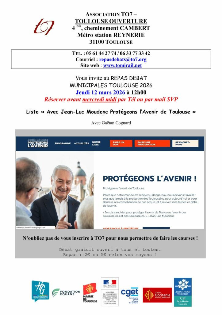 « Tous les Évènements Repas-débat à TO7 / Municipales Toulouse 2026 12 mars – 12h00 – 14h00 Ajouter au calendrier Google Agenda iCalendar Outlook 365 Outlook Live 2026-03-09