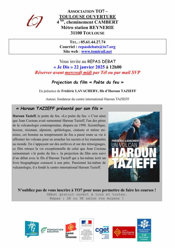 repas débat à TO7 / projection du film « Haroun Tazieff, le poète du feu »