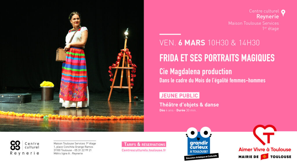 Frida Kahlo, figure emblématique de l’art du XXe siècle, a transcendé son rôle de peintre pour devenir une véritable icône féministe et révolutionnaire. Par la vérité de l’actrice, la poésie de la création sonore et musicale, par les couleurs et le rythme très vivant du spectacle qui propose des interactions, Frida va embarquer les enfants avec elle dans son univers étonnant et leur délivrer son secret de l’existence.