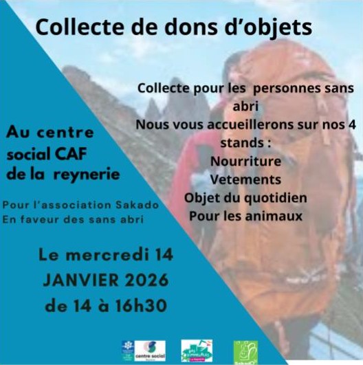 Mercredi 14 Janvier, les ados de l'association Bas d'Immeubles vous propose une collecte d'objets en faveur des sans abris !L'intégralité des dons seront remis à l'association SAKADO De 14h à
