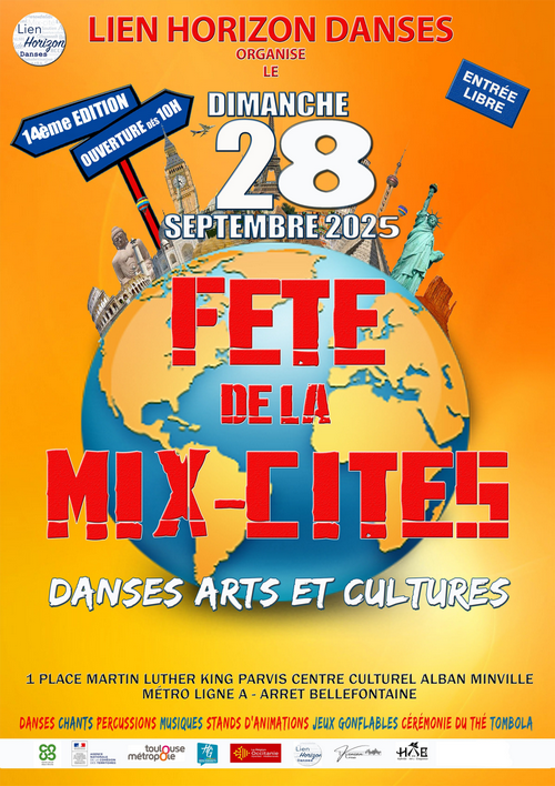 Nous avons le plaisir de vous inviter à participer à la 14ᵉ édition de la Fête de la Mix-Cités, qui se tiendra le dimanche 28 septembre 2025 sur l’esplanade du Centre