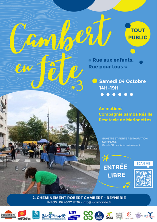 Cambert en Fête, c'est le 4 octobre de 14 à 19h, la rue aux enfants ..Venez nombreux LudiMonde C.E.L 2, cheminement Robert Cambert31100 TOULOUSE |