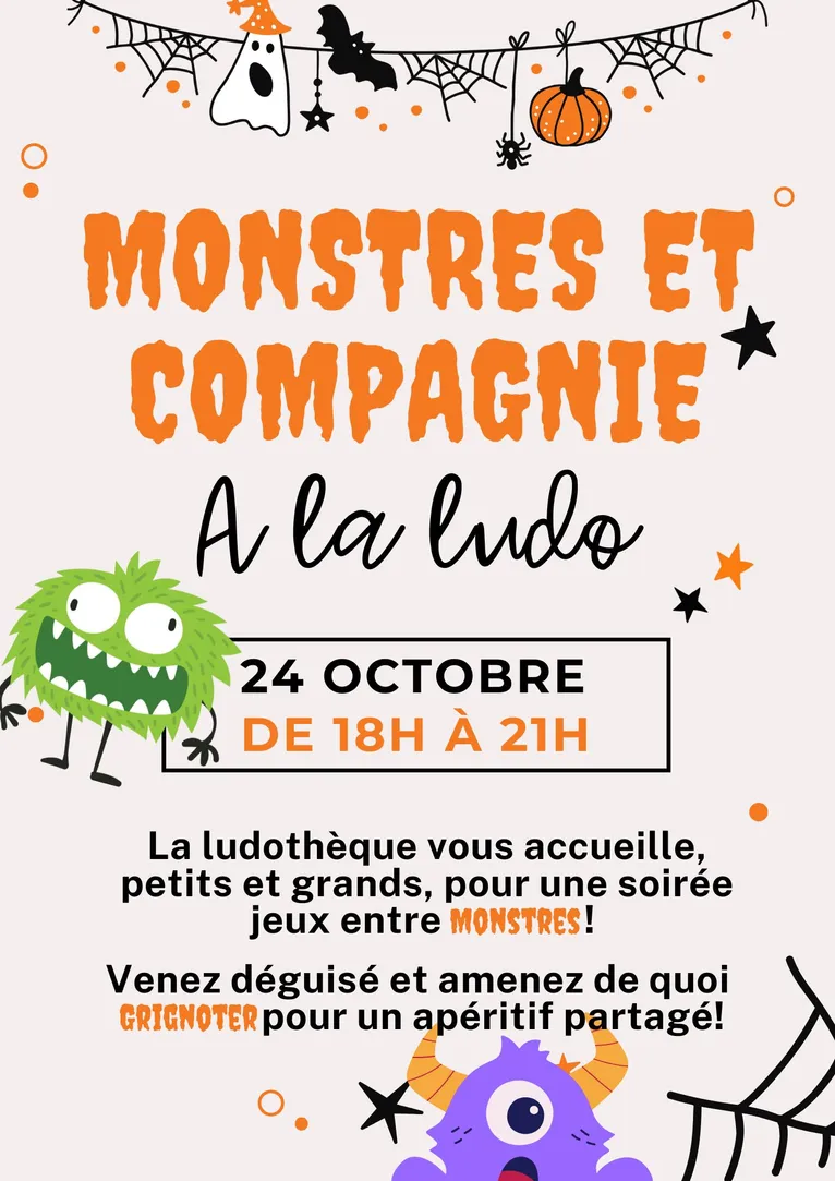 Soirée jeux Monstres et Cie Informations et inscriptions à la ludothèque Ludimagine 07 82 56 50 46 ou ludimagine@alliancesetcultures.org |