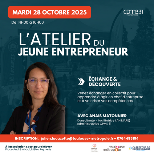 Dans le cadre du Contrat de Ville, la CPME de Haute-Garonne propose un atelier se sensibilisation à l’entrepreneuriat pour les jeunes du Mirail Le mardi 28 octobre, de 14h à |