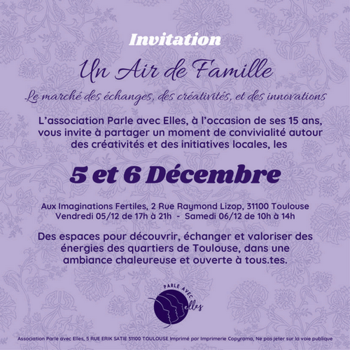 Marché des Créations « Un air de famille », le marché des créations, des échanges et des innovations organisé par l’association Parle avec Elles.